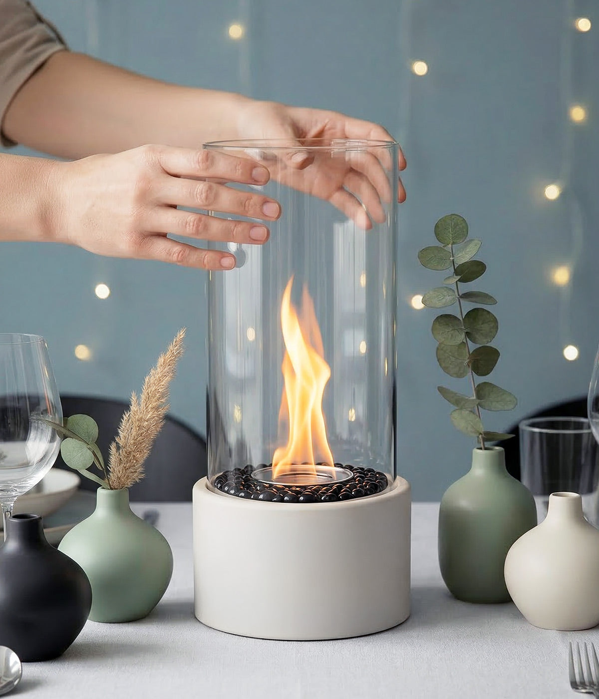 Angenehme Wärme, ein beruhigendes Flammenspiel und gesellige Momente – das Tischfeuer bringt die besondere Atmosphäre eines Lagerfeuers stilvoll direkt auf den Tisch. Als elegante Ergänzung zur Tischdekoration schafft es mehr Ausdruck und Wärme als klassische Kerzen und wird zum echten Blickfang.