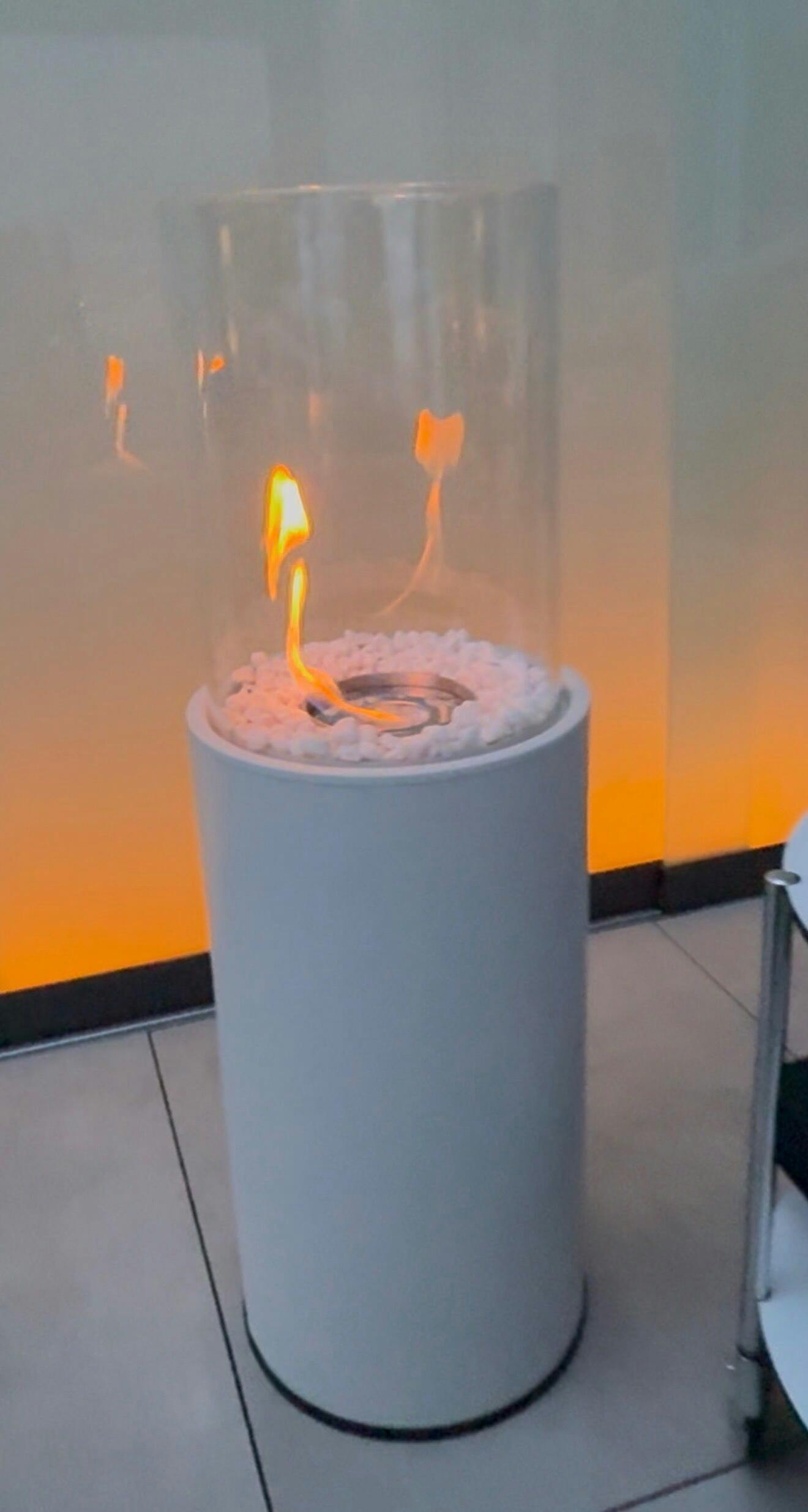 Unsere Kamine sind einzigartig und heben sich von allen anderen auf dem Markt ab! Der besondere Unterschied liegt in der Metallbasis: Sie enthält eine spezielle Wand, die die Deko-Steine vom Glaszylinder trennt. Dadurch wird die Handhabung erheblich vereinfacht und sorgt für eine saubere, ordentliche Optik.