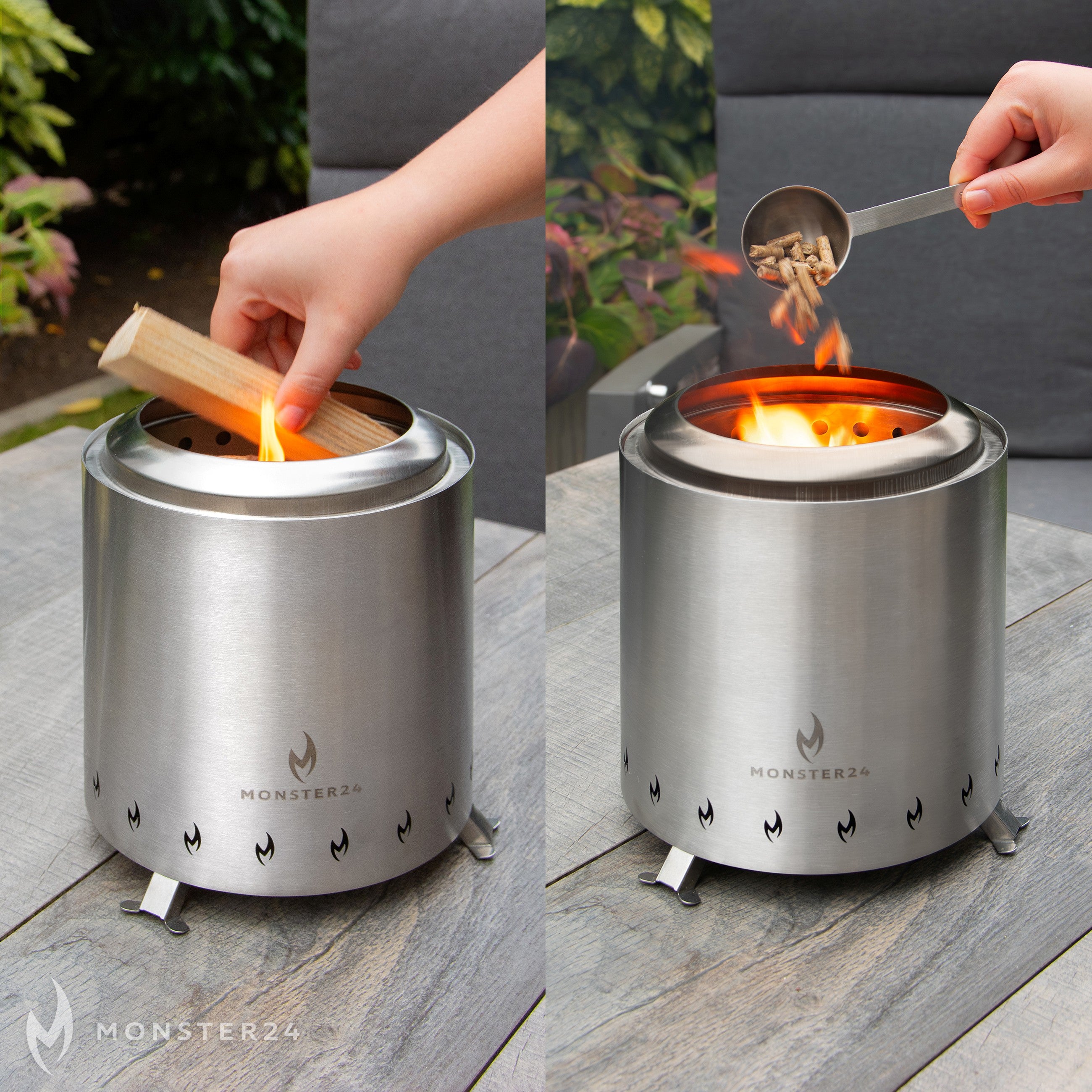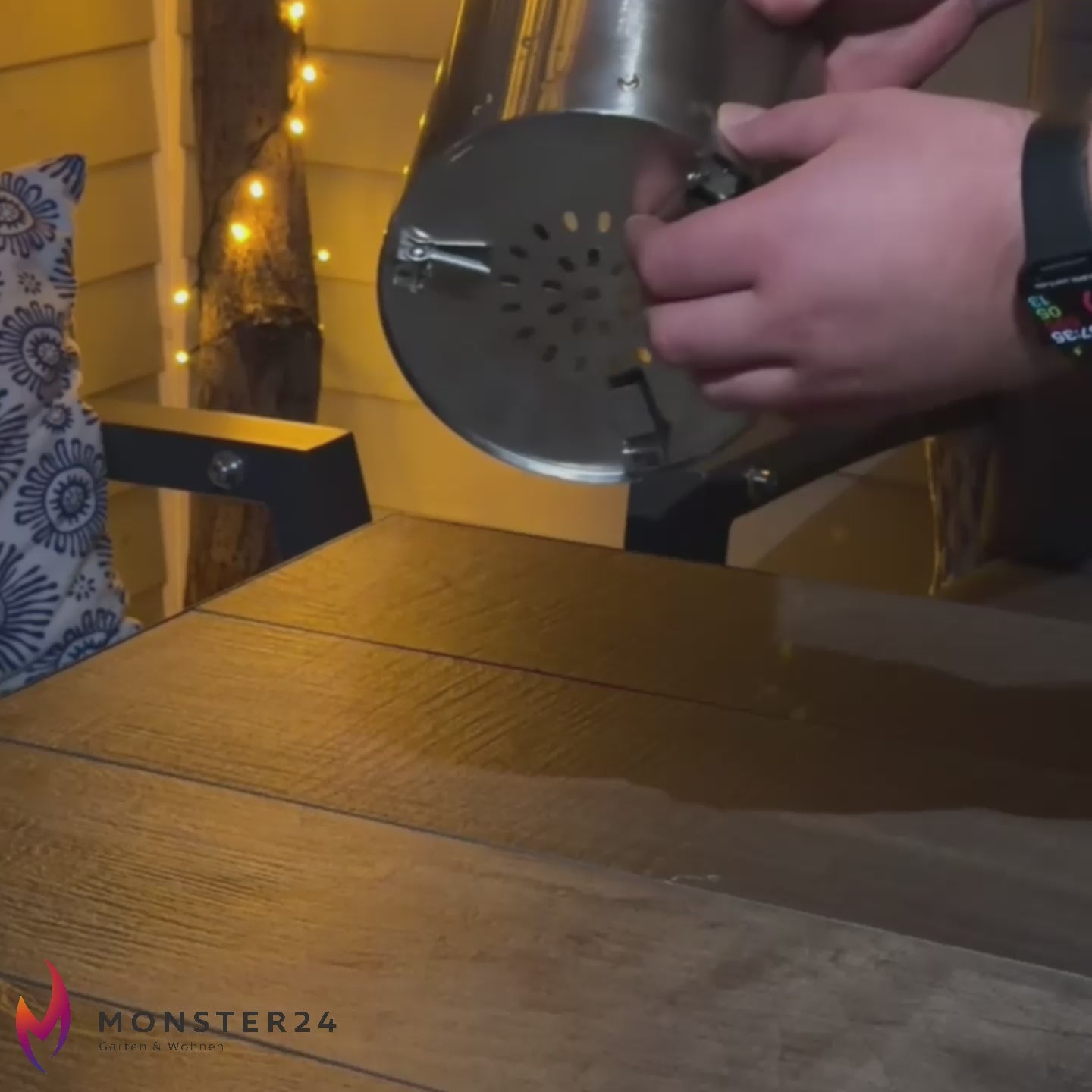 Das Fireal-Set bringt echtes Kaminfeuer-Feeling direkt zu dir nach Hause – egal ob auf dem Tisch, der Terrasse oder im Garten. Dank der cleveren Bauweise kannst du frei wählen, ob du ihn mit Holz oder Pellets befeuerst. Im Lieferumfang sind bereits Anzünder und ein Starter-Paket Pellets enthalten – so kannst du sofort loslegen.