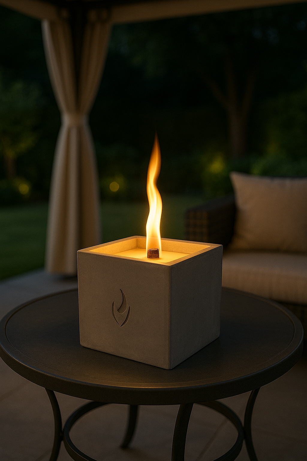-Betonkerze mit Dauerdocht – Outdoor-Tischfeuer aus massivem Beton mit 2x2 cm großem Dauerdocht für stimmungsvolle Abende auf Balkon, Terrasse oder im Garten.