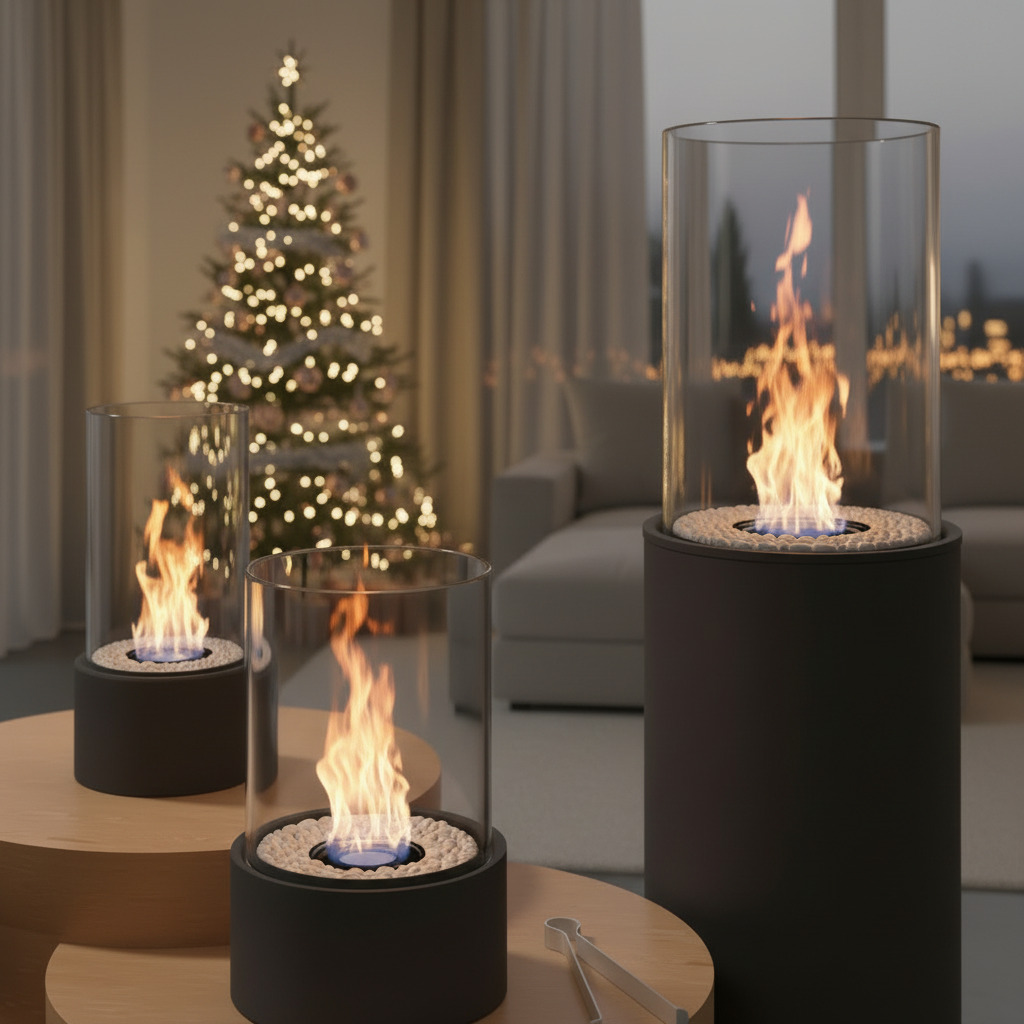Ein echter Hingucker, der sauber brennt und angenehme Wärme in alle Richtungen abstrahlt – und das komplett geruchs- und rußfrei dank unseres flüssigen Bio-Ethanols.
